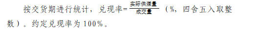 4.扣噸及罰沒噸數不參與兌現率計算,質量指標也不參與月度或供貨期加權平均計算.