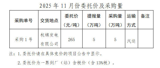 內蒙古能源集團有限公司計劃對所屬杭錦發電有限公司2025年11月市場煤采購進行電子專場交易,交易信息現對外公開發布,凡符合條件的交易商均可參加。