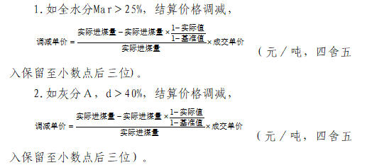 (4)如化驗單批次Qnet,ar<(基準值-300),該批煤作廢,按0元結算。