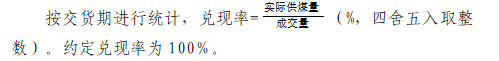 4.扣噸及罰沒噸數不參與兌現率計算,質量指標也不參與月度或供貨期加權平均計算.
